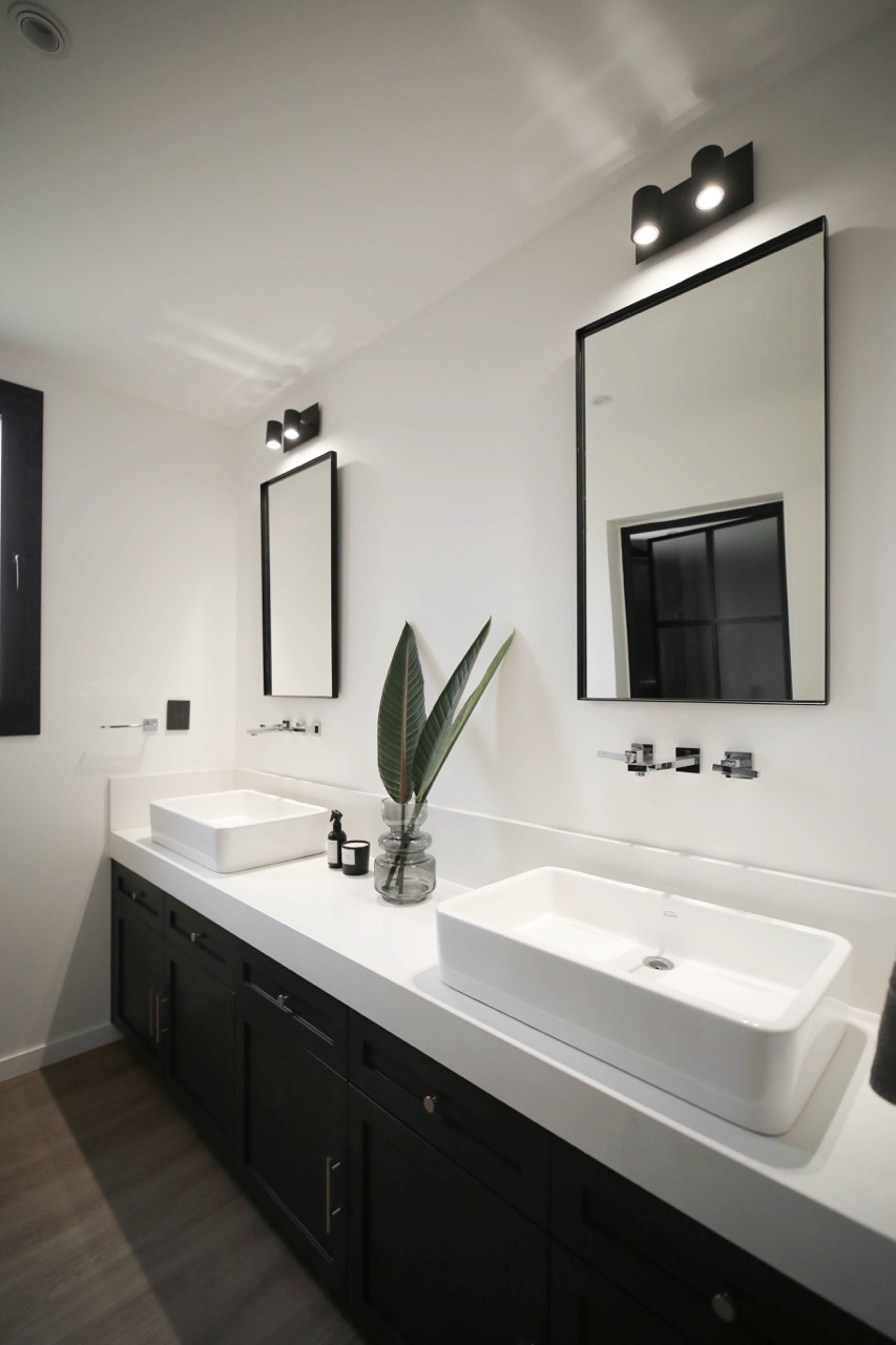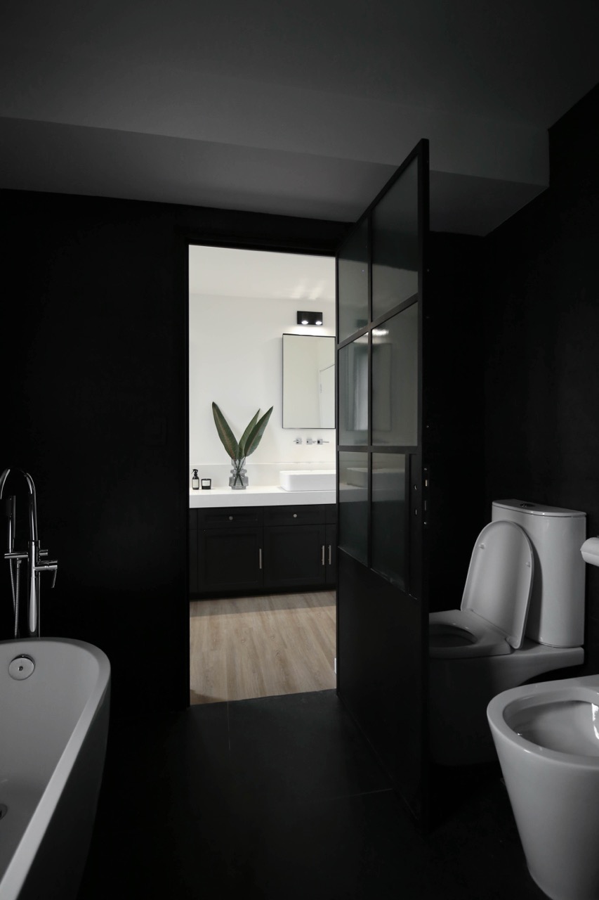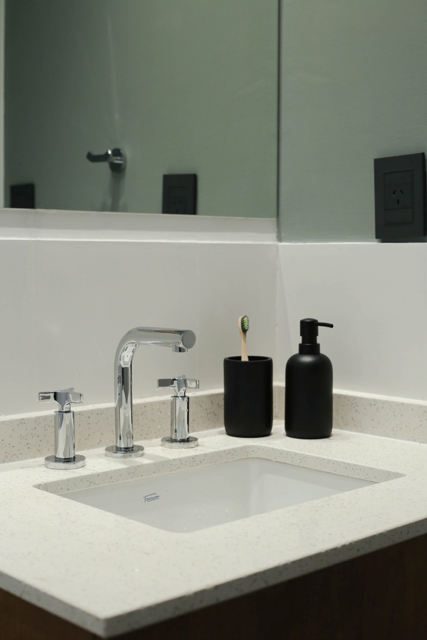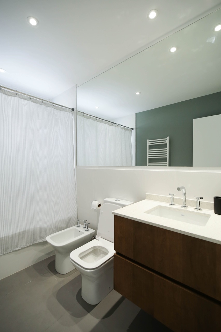 Decidimos utilizar una paleta de colores en blanco y negro, complementada con diversas gamas de grises para crear un ambiente sofisticado. En la cocina, priorizamos la funcionalidad y la estética en los espacios de almacenamiento y las mesadas interiores fueron diseñadas en tonos claros para maximizar la luminosidad.
