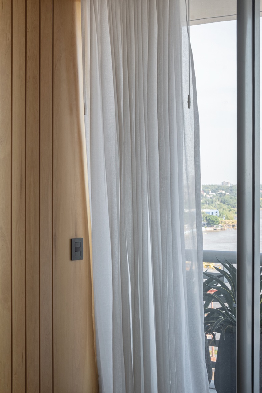 Este quincho/estudio busca integrar de manera fluida el trabajo y la vida en el hogar, convirtiéndose en uno de los espacios más especiales de la residencia. La cubierta de vidrio, que se abre al cielo, y las amplias ventanas orientadas al río generan una armonía visual que se refleja en toda la composición arquitectónica.
