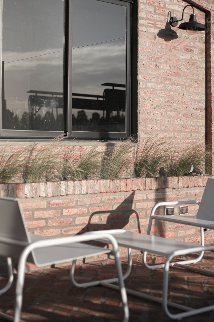 Para las fachadas se eligió ladrillo visto por su autenticidad y vínculo con la historia del lugar. Bajo esta premisa, se diseñó la galería y se cuidaron los detalles interiores, donde se mantuvo la tabiquería de chapa, acompañada por mobiliario del mismo material y pisos de porcelanato, seleccionados por su funcionalidad y bajo mantenimiento.