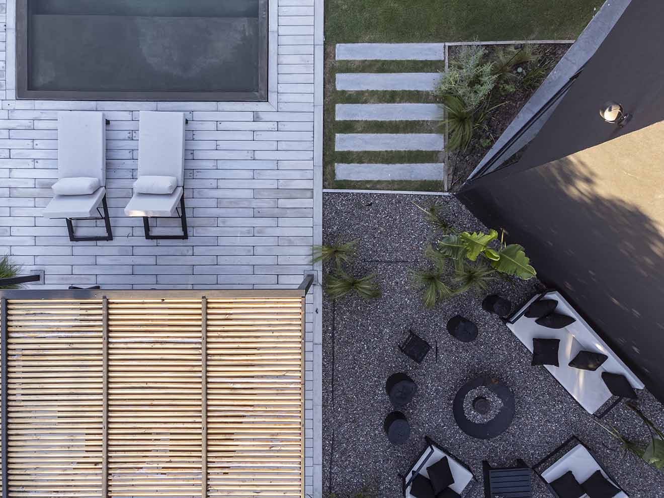 El gran desafío de esta obra fue mantener la arquitectura original de la vivienda diseñando un espacio de pérgola con piscina, parasoles remarcando la linealidad de las ventanas y un nuevo diseño de paisajismo e iluminación que consolida la estructura con estilo contemporáneo de volúmenes puros.